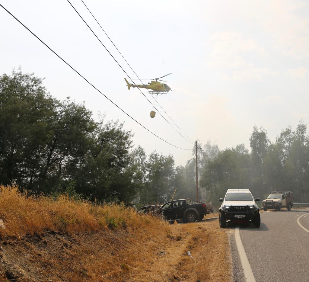 8月22日,在葡萄牙乌尼艾什-迪塞拉附近,消防人员和直升机紧急扑灭一处起火点。新华社记者荀伟摄