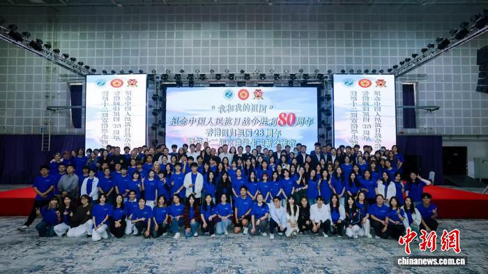 图为“纪念中国人民抗日战争胜利80周年、香港回归祖国28周年暨第十二届京港新生迎新营”活动结营仪式现场大合影。(主办方供图)