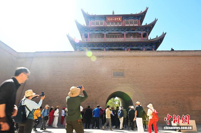 9月23日,甘肃省嘉峪关市嘉峪关关城文物景区游客络绎不绝。中新社记者 李亚龙 摄