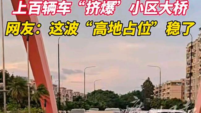 小区近百辆车停桥上防台风天泡水 高地策略应对台风。近日,广州番禺丽江花园的业主们为了躲避台风“桦加沙”,将近百辆私家车停放在小区内部的丽江大桥上。车辆排列成2-3排,单向保留了一条车道供通行。这一做法在网络上引起热议,被称为“高地占位”。