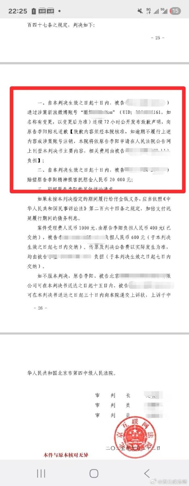 李阳“家暴”侵权案一审胜诉!判决书认定:前妻言论无充分证据支撑、与事实不符 网络法治课的胜利