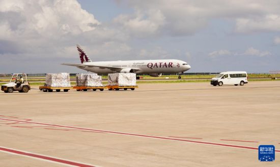 10月4日,一架卡塔尔航空公司的飞机抵达马尔代夫维拉纳国际机场。新华社记者 伍岳 摄