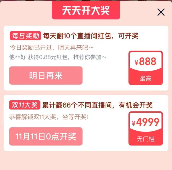 双11直播红包已全面脱水 消费者热情减退!“双11”购物节提前近一个月开启,被称为“史上最长双11”。一些消费者依然热衷于搭配满减和列攻略,希望在大促中获得更多的优惠。但也有人开始佛系购物。
