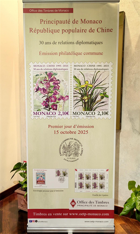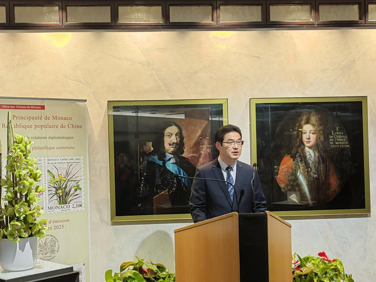 何有麟在致辞中指出,纪念邮票以中国春兰和摩纳哥风铃草并蒂成图,体现了双方在生态保护和可持续发展等方面的共同理念,象征两国人民的深厚友谊。
