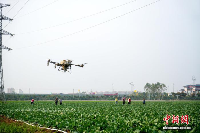 无人机喷洒作业。吴淘淘 摄