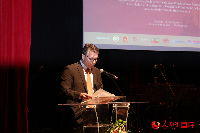 巴西—中国友好协会主席恩里克·达诺布雷加在活动中致辞。人民网记者 时元皓摄