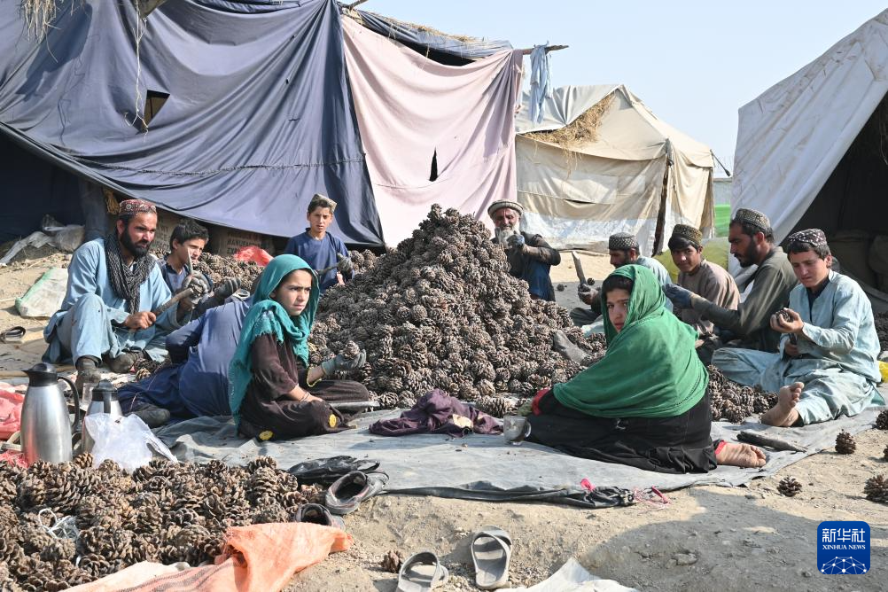在10月末的松子采收旺季,记者从阿首都喀布尔驱车5小时抵达阿东部边境省份霍斯特的松子加工交易市场。每年这个时候,阿东部各省有超过10万人参与松子采摘、清理、加工和打包工作。这一传统产业在一定程度上缓解当地就业压力,为山区民众带来收入。遍布山坡的野生松林,成为许多家庭赖以为生的“绿色银行”。
