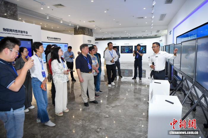 11月12日,行走中国·2025海外华文媒体海南行活动走进海南生态软件园。图为海外华媒参访了解数字经济的具体应用场景。中新网记者 骆云飞 摄