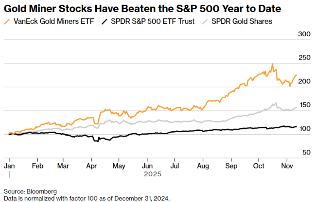 雅各布森称,范艾克黄金矿业ETF(代码GDX)的波动幅度通常是黄金价格本身的两倍。该基金今年年初至今回报率已超125%。相比之下,SPDR黄金ETF(代码GLD)同期57%的涨幅虽仍令人瞩目,但相形见绌。