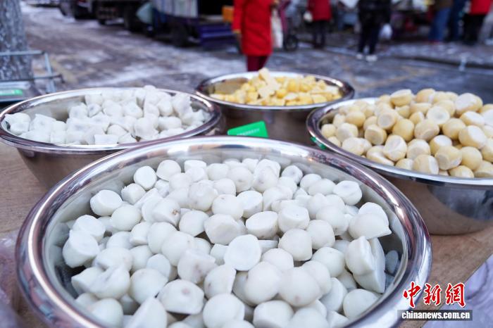 黑龙江哈尔滨变“天然大冰箱”冻货摆上街头售卖