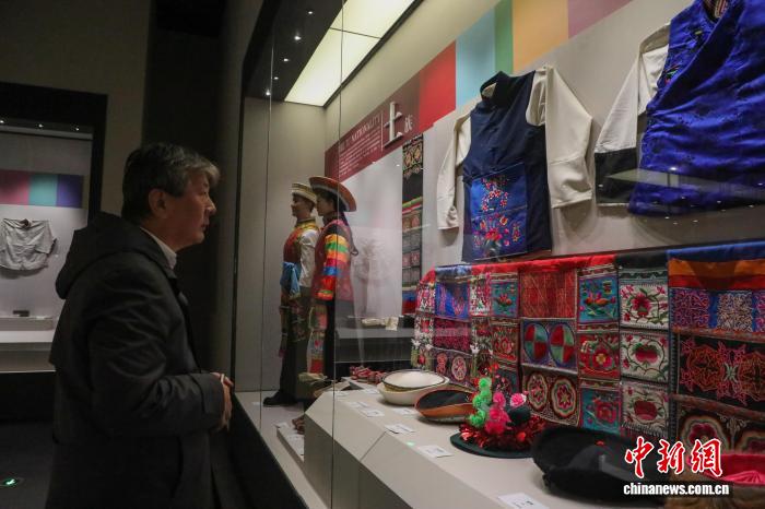 图为与会人员参观海东市河湟文化博物馆内陈列的土族服饰。中新社记者 马铭言 摄