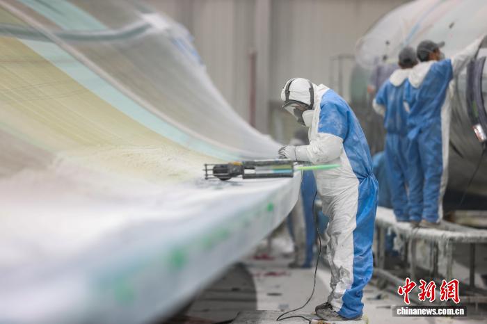 12月11日,工人在打磨风电叶片半成品。记者 瞿宏伦 摄