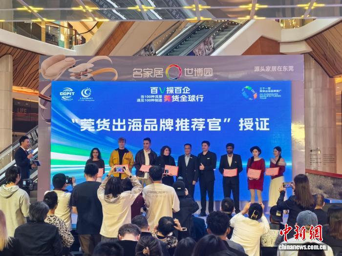 中新网东莞12月29日电 (记者 许青青)由东莞市贸促会主办的“三个一百”莞货出海品牌推广活动29日在该市启动。活动计划通过“百家商会、百名网红、百家名企”联动的模式推动“制造+流量”深度融合,全面展示东莞制造的创新实力与品质内涵,推动本土品牌集群化、国际化发展。近百名来自海内外的网红达人参加了启动仪式。
