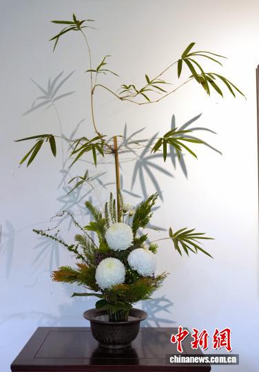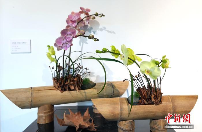 12月29日,四川省第一届“中国式插花”艺术展在成都杜甫草堂博物馆开展。此次展览由四川省花卉协会、成都杜甫草堂博物馆联合主办,以“诗花相和 梅香草堂”为主题,展览汇聚了众多插花艺术名家、青年花艺师50余件精品力作。图为展出的作品《拟香》。中新社记者 安源 摄