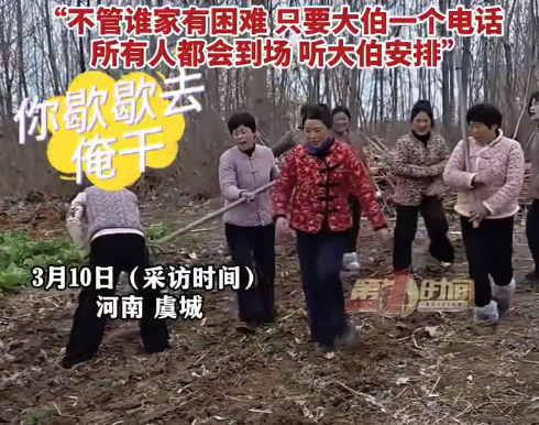 近日,河南虞城。陈女士的父亲离世后,母亲只能一个人干农活。当天,陈女士的母亲一个在地里种豌豆,80岁的大伯知道后,立即用电话喊来七八个堂姐。一亩地的豌豆本来一个人要干两天的时间,结果大家齐上阵,一下午就忙完了。