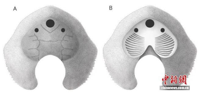 短耳鸮甲鱼拥有宽阔的“帽檐状”腹环,这一特征曾被认为是盔甲鱼类适应半埋藏生活的重要标志。然而,它的鼻孔和眼睛位置却与五窗鱼科、都匀鱼科及多鳃鱼科等进步型多鳃鱼类高度一致,可能代表了多鳃鱼目从半埋藏生活向表层底栖生活过渡的一个中间状态。