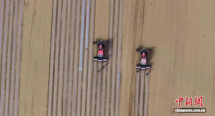 今年,昆玉市采取机械化平播与节水套种相结合的种植模式。王震 摄