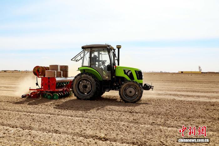 中新网兰州3月26日电 (马爱彬)3月底,甘肃省武威市民勤县苏武镇元台村高标准农田里机器轰鸣,搭载浅埋滴灌水肥一体化技术的小麦播种机来回穿梭,一次性完成开沟、播种、施肥、铺设滴灌带、覆土等多道工序,为沙漠边缘的旱作农业按下春耕“快进键”。