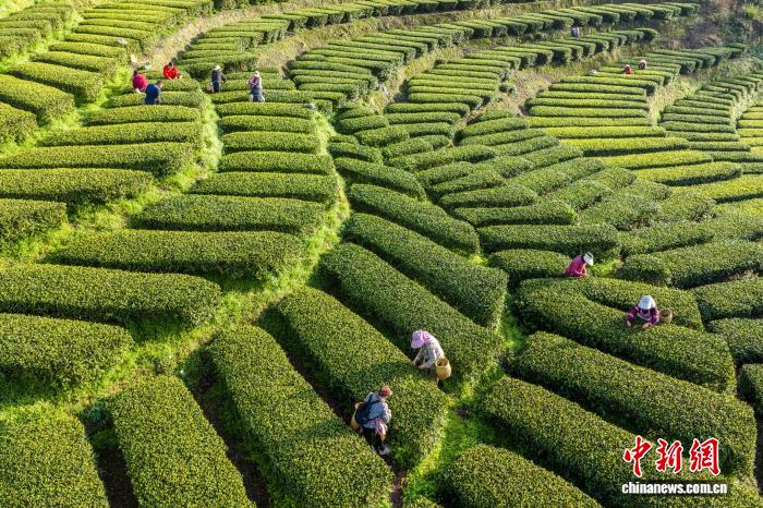 湖北恩施:茶山叠翠 茶农“画”中采春茶