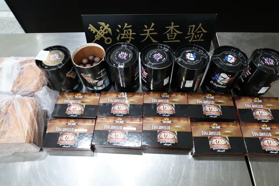 海关关员查获的328支雪茄。 图片来源:“海关发布”微信公众号