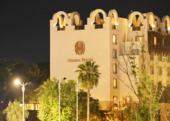 这是4月11日晚在巴基斯坦首都伊斯兰堡拍摄的塞雷纳酒店外景。新华社发(王申摄)