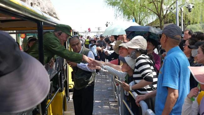 4月10日上午8点半,这些老兵进入景区,直到11点40分左右离开。期间他们受到众多游客的夹道欢迎,大家纷纷向老兵致敬。龙门石窟研究院副院长张志民表示,游客们像主人一样欢迎老英雄们来做客。