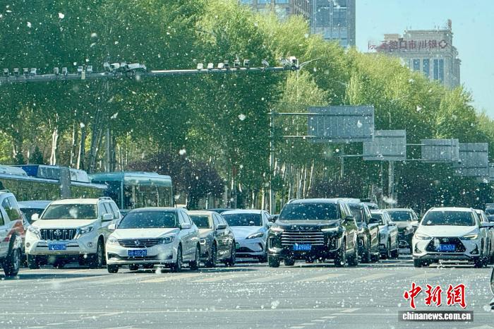 银川街头,漫天杨柳飞絮如雪般飘落,车流在纷飞的絮雨中有序通行。中新网记者 李佩珊 摄