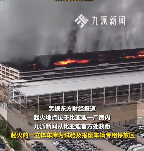 比亚迪公司随后回应称,起火的车库是用于停放试验及报废车辆的专用区域。目前火势已被完全控制,无人员受伤。