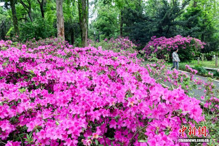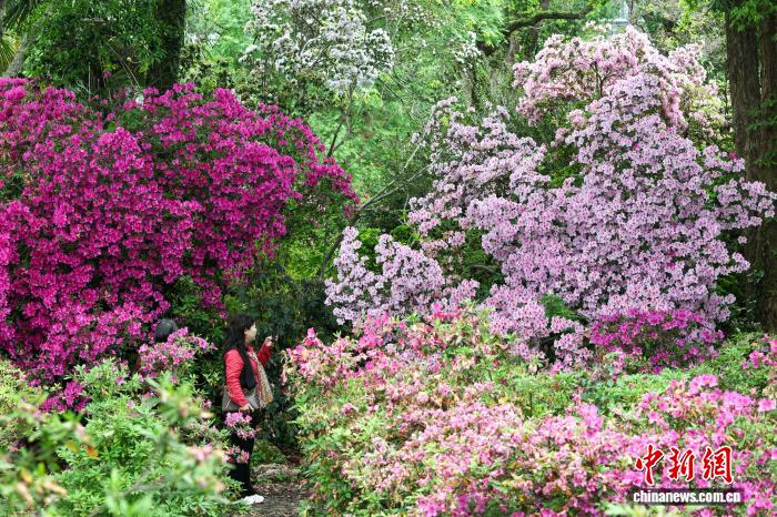 4月15日,游客观赏盛开的杜鹃花。中新社记者 张畅 摄