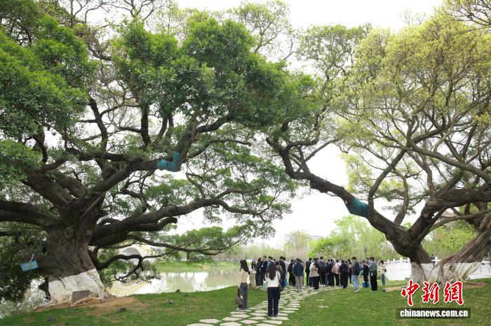 园博园内,原址保留的古榕树吸引民众参观。孙杨洋 摄