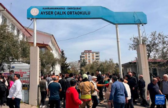 4月15日,人们聚集在土耳其卡赫拉曼马拉什省发生枪击事件的中学校园等待消息。新华社发(穆斯塔法·卡亚摄)