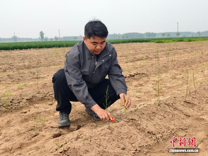 图为张舒琪在芦笋地里劳作。赵卓昱 摄
