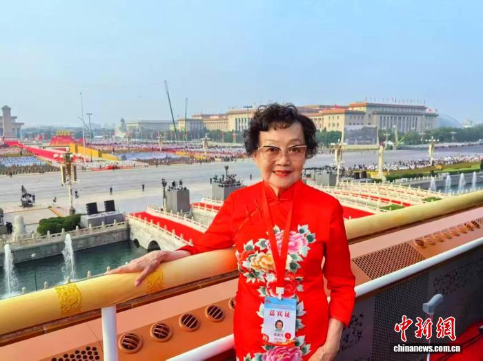2025年9月,张素久在北京参加纪念中国人民抗日战争暨世界反法西斯战争胜利80周年大会,登上天安门城楼。(受访者此前供图)