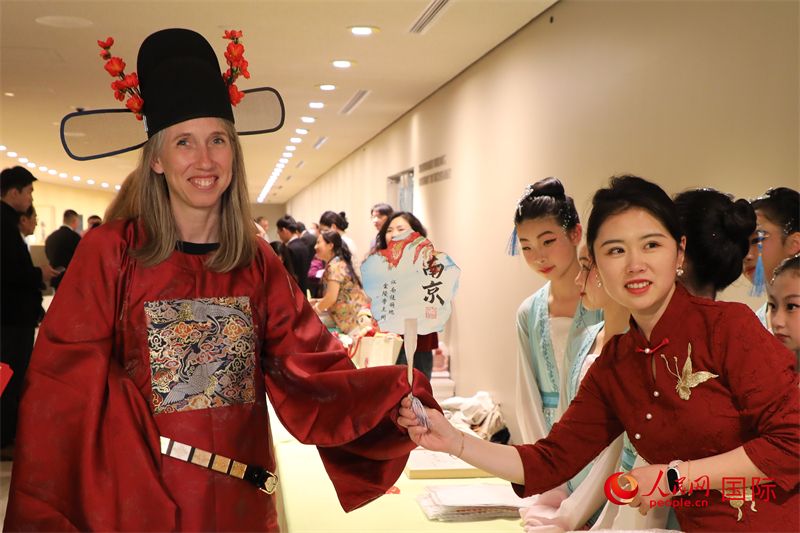 图为嘉宾体验中国传统服饰。人民网记者 李志伟摄