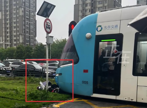 武汉有轨电车与电动车相撞 工作人员回应:被撞二人已送医 4月9日,湖北武汉。有市民反映,在关山大道附近,有轨电车与电动车相撞。图片显示,有轨电车上写有光谷交通,有轨电车车头紧挨一辆倒下的电动车,电动车上有人被压倒。4月9日,光谷交通工作人员回复《正在新闻》,被撞的两人已送往医院,有轨电车是正常... 04-09
