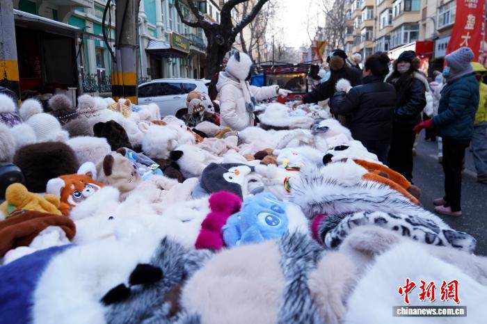 黑龙江哈尔滨:气温走低催生“暖经济” 12月2日,黑龙江哈尔滨,游人选购保暖衣物。当日,黑龙江哈尔滨最高气温今冬首次降到-10℃以下 ,在哈尔滨红专街早市,棉帽子、大花袄等保暖物品摆上街头,游人纷纷选购。中新社记者 赵宇航 摄 12-02