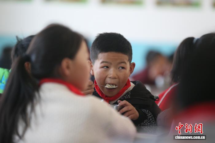 青海义务教育学生营养餐补助 51.31万名学生受益 12月11日,在西宁市湟中区徐家寨小学,学生们正享用营养午餐。近日,青海农村义务教育学生营养改善计划实现扩面升级,享受补助的学生数量从25.83万名增至51.31万名,覆盖全省67.29%的义务教育阶段学生。张忠苹 摄 12-11
