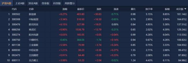 沪指跳空涨超1% 逼近4000点 创十年新高 沪指早间震荡走强,再创十年新高,逼近4000点。截至早盘收盘,沪指涨1.04%,深成指涨1.26%,创业板指涨1.54%。盘面上热点快速轮动,算力硬件方向表现强势,东田微触及20cm涨停,新易盛、汇绿生态、中际旭创盘中均创历史新高 10-27