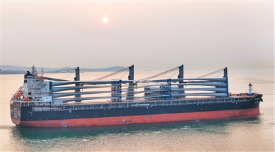 全球绿色能源合作迎来新契机(环球热点) 3月28日,7套国产风电设备在山东港口烟台港蓬莱港区完成装船并发往奥地利。随着中国风电企业不断拓展欧洲市场,烟台港目前已形成月均两班的欧洲风电设备发运频次。图为装载着出口奥地利风电设备的货轮从山东 04-01