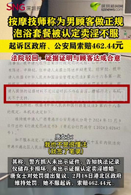 女技师做488元按摩套餐被认定卖淫 起诉被驳回 【#女技师做488元按摩套餐被认定卖淫# 起诉被驳回】#女技师被认定涉黄拘留1天后起诉警方# 近日,广西贵港按摩技师唐女士称,去年为顾客做泡浴服务时,被警方以提供涉黄服务拘留一天。次日又遭全身赤裸检查和二次审讯 11-05