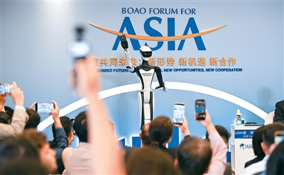让新技术在实业中扎根(侨界关注) 博鳌亚洲论坛二〇二六年年会期间,多元智能设备全方位护航盛会运行,以科技力量赋能智慧办会。图为在年会分论坛上参与互动的人形机器人。 新华社记者蒲晓旭摄 日前,博鳌亚洲论坛2026年年会·华商领袖 04-01