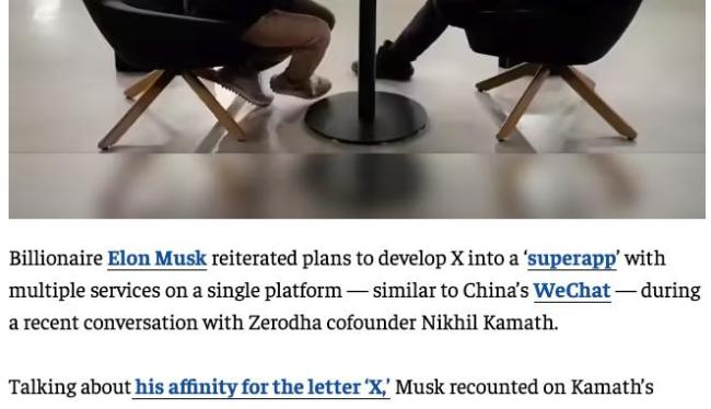 马斯克称想将X打造成微信升级版 构建超级应用愿景 特斯拉首席执行官埃隆·马斯克在与Zerodha联合创始人尼基尔·卡马斯的对话中表示,他希望将社交平台X打造成中国以外的“微信升级版”,使其具备信息发布和金融支付等多种功能。这次交流是在播客节目“People by WTF”中进行的 12-02