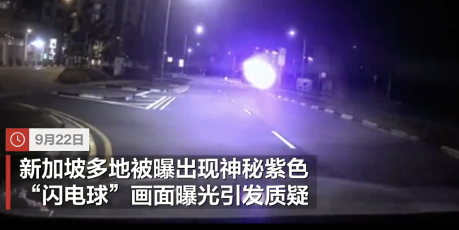 新加坡多地现紫色闪电球?官方回应 非气象现象引起 9月22日,新加坡多地出现了神秘紫色“闪电球”,相关画面曝光后引发了广泛质疑。19日,有网民拍到一个紫色球体在路上弹跳,并在发出四次“闪电”噼啪声后消失。20日,又有网民称目击到类似球体盘旋并发出明亮光芒,身后留下一条烟雾尾迹 09-23