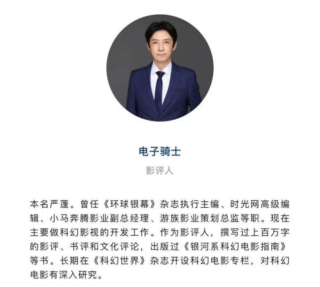 知名影评人“电子骑士”严蓬去世 影迷科幻迷扼腕叹息 严蓬以网名“电子骑士”广为人知,在微博平台拥有近180万粉丝,他的影评和观点深受读者喜爱。消息传来,各界纷纷表达哀悼。他生于1971年,毕业于北京师范大学中文系,曾在《环球银幕》杂志工作八年,担任首席编辑、执行主编 11-10