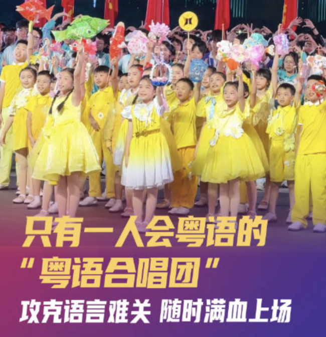 39人粤语合唱团竟只有1人会粤语! 39人粤语合唱团竟只有1人会粤语,演唱粤语儿歌的合唱团,居然只有一人会粤语?10后苦练粤语只为全运会闭幕式献唱,深圳蛇口学校五彩石合唱团的小团员们刻苦练习,攻克语言难关,将在十五运会闭幕式上奉献精彩的粤语表演。39人粤语合唱团竟只有1人会粤... 11-21