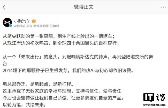 小鹏汽车广州新总部启用 新征程启航 小鹏汽车今日宣布新总部在广州正式启用,标志着公司进入新的发展阶段。小鹏汽车董事长何小鹏提前一天公布了这一消息。他透露,新总部占地近40万平方米,包括8万平方米的公园。其独特的X造型设计和3个科技销售展厅引人注目 10-23
