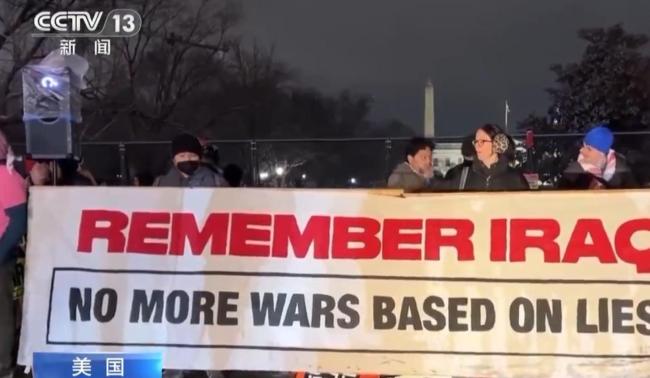 美多地民众抗议对伊动武 反战呼声高涨 当地时间3月2日晚,部分美国民众在首都华盛顿举行抗议集会,要求美国和以色列停止打击伊朗,避免在中东引发新的战争。有抗议者表示,美国总统无权发动战争,政府应更多关注国内民众的需求,而不是将资金浪费在海外冲突上 03-04