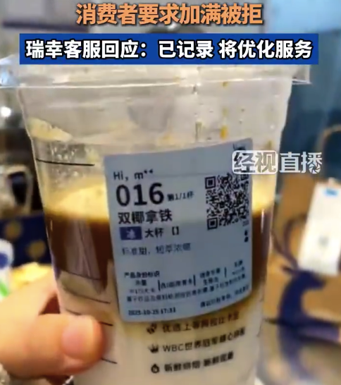 瑞幸拿铁去冰仅半杯要求加满遭拒 瑞幸回应 近日,北京一位网友反映,她在瑞幸咖啡王府井奥莱town up店购买的去冰双椰拿铁,到手饮品仅有半杯。提出加满椰子水后被店员拒绝,对方称“店里规定不加冰就是半杯”。对此,瑞幸客服表示,将优化门店服务质量,力争为消费者提供更好的体验。该网友表示... 10-31