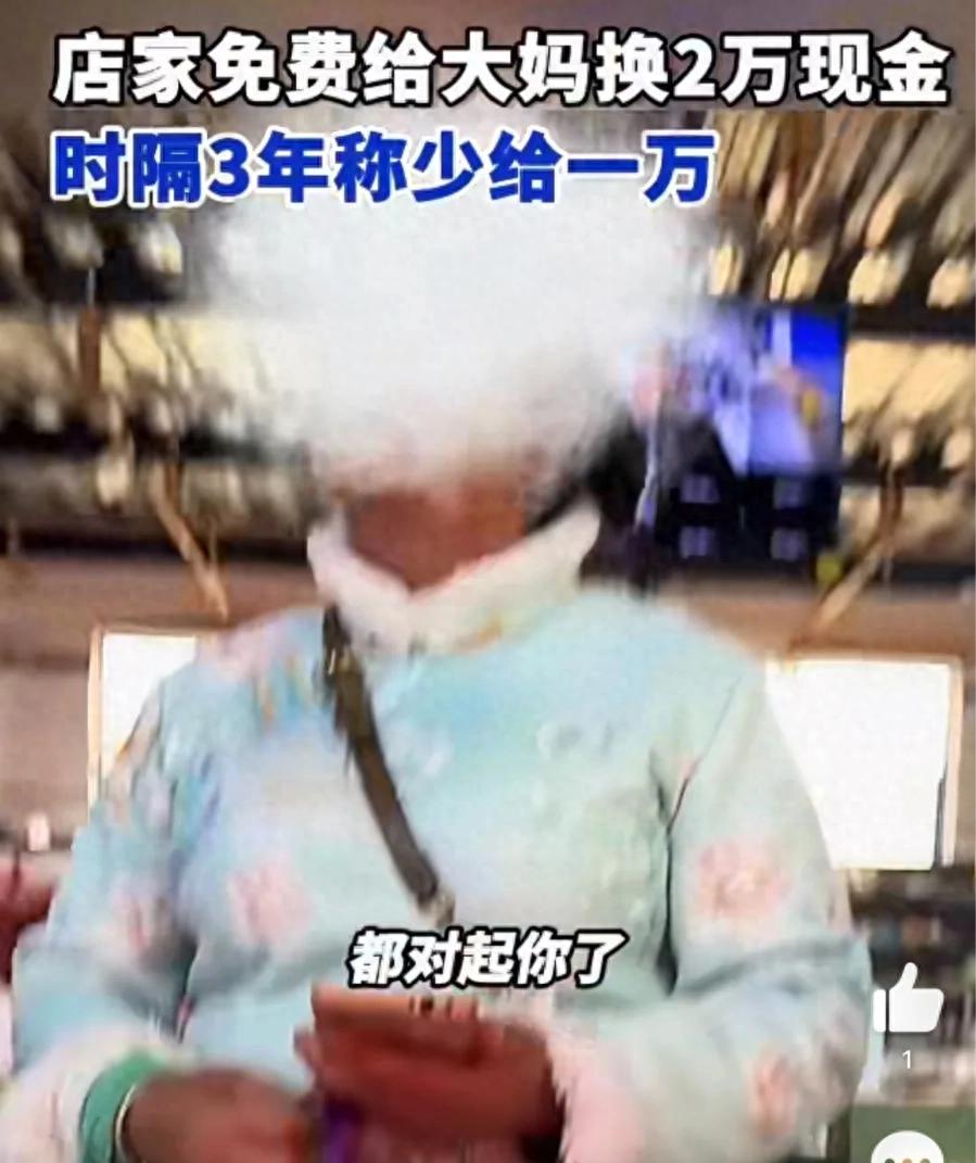 大妈换2万现金3年后称少给一万! 大妈换2万现金3年后称少给一万!12月1日,河南周口。店主郭先生称大妈2022年7月30号用微信分批给自己转了2万元,让给她换2万元现金,时隔3年多过来说当时少给她一万元,称当时大意了。郭先生说,对方经常来换钱,自己也不收手续费,3年多前的... 12-02