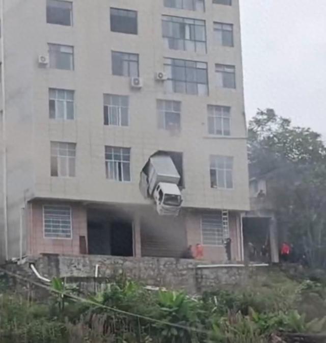 一货车撞破楼房墙体车身悬空险坠楼,当地回应 未造成人员伤亡 11月1日,有网民发布视频显示,一辆小型货车撞破墙体,悬挂在一栋7层建筑的2楼,车头外露,看起来十分惊险。有人质疑该视频为AI合成,但经核实,确有此事发生,地点位于湖北恩施鹤峰县容美镇新庄村 11-03